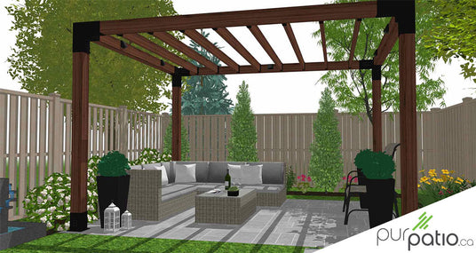 En plus du patio, dans la cour arrière on retrouve une grande pergola en cèdre. Cette dernière abrite une zone détente. Cet espace contient un grand sofa en L ainsi qu’une petite table d’extérieur, parfait pour relaxer et profiter du beau temps. Des jardinières ont été placé aux abords de la pergola, afin de compléter l’ambiance que procure les plantations tout autour de la cour. Ce client pourra donc profiter du beau temps à l’extérieur dans sa cour arrière, tout en intimité.