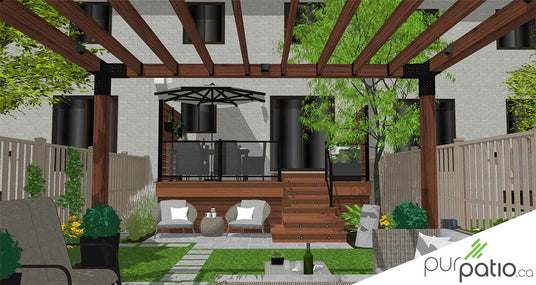 Ce client de la grande région de Montréal désirait rajeunir le look de sa cour arrière. Il a donc décidé de faire appel à nos services afin de concevoir un design 3D d’un nouvel aménagement. Cet aménagement au look moderne comporte un nouveau patio en PVC, ce qui représente aucun entretien, ainsi qu’une pergola en cèdre.