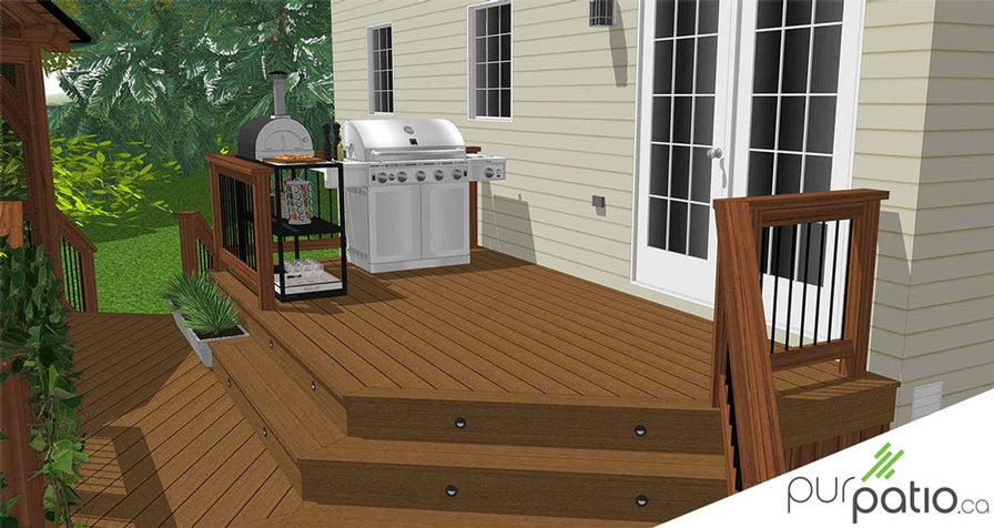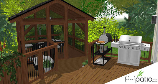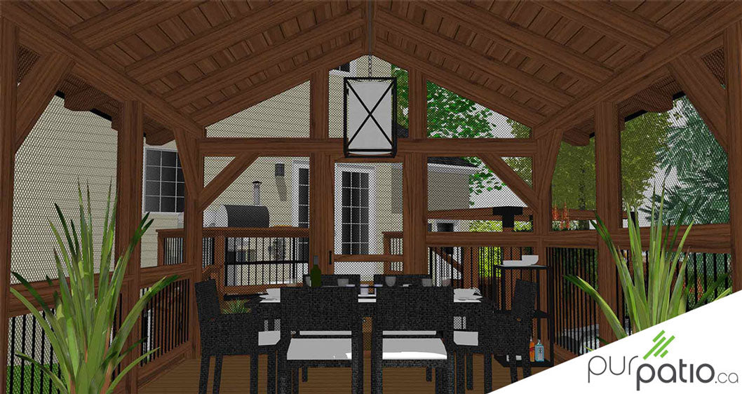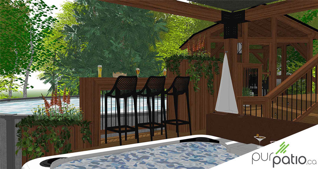 Ce projet de design 3D consistait à réaménager complètement le patio de piscine du client, résident de Chelsea. Étant dans une cour arrière entourée d’arbres, le but du réaménagement était également de conserver l’aspect intimité de l’endroit. Nous avons donc conçu un grand patio à plusieurs paliers, qui comprend un gazebo, une pergola, et plein d’autres installations divertissantes.