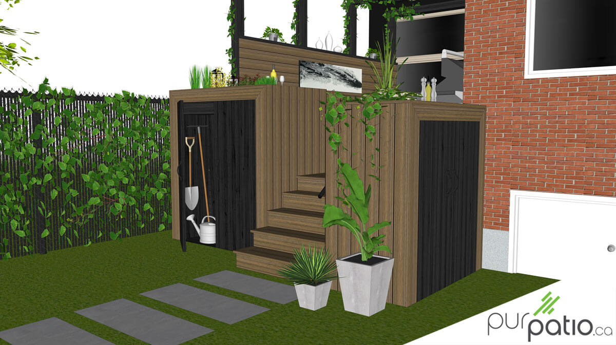 Cet aménagement de terrasse multifonctions a été conçu pour convenir aux espaces urbains restreints. Nous avions comme mandat de concevoir un patio intime pour accueillir une zone repas avec barbecue à l’abri du regard des nombreux voisins.