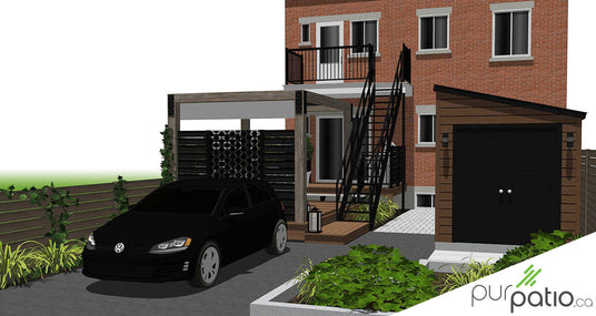 Cette propriété, située en plein cœur de Montréal, avait une cour à la vue de plusieurs voisins. Ce client nous a confié le mandat de design afin d’avoir un aménagement complet et intime. De plus, le balcon du haut et l’escalier devait rester en place et nous devions les inclurent dans la future configuration de la cour. Nous avons opté pour un patio TimberTech, collection Legacy de couleur Pecan. Ce matériau est sans entretien et il ressemble énormément à du bois.