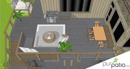 Finalement, l'espace du patio supérieur est prévu pour accueillir le barbecue avec comptoir sur mesure en composite pour faciliter la préparation et le service des repas. Il peut également recevoir le mobilier de salle à manger pour au moins 6 personnes grâce au banc sur mesure en composite. Nous y avons installé une section lounge aménagée avec une banquette intégrée aux rambardes également faite sur mesure en composite. Le mobilier intégré est résistant aux intempéries et il est très solide et durable. Ce sont tous ces éléments qui font de cet espace un endroit versatile. C'est réellement un aménagement de rêve pour profiter pleinement de la vie à l’extérieur en toutes circonstances.